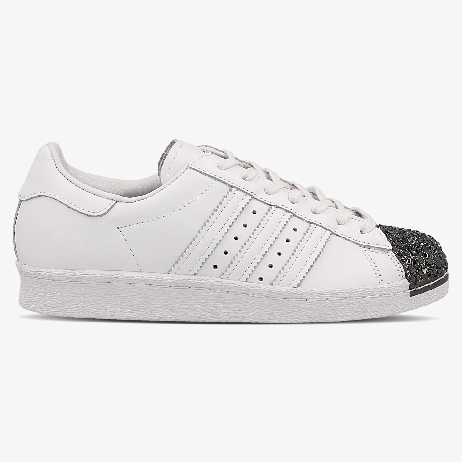 Die legendären Superstar sind jetzt in einer neuen Version erhältlich! Adidas präsentiert mit Stolz das Modell 80s Metal Toe, die Originalität und der Stil wird dich begeistern. Das zeitlose Design wird mit dem monochromen Schaft, der charakteristischen Schale und funkelnden Kristallen gebrochen. Im Inneren des Schuhs befindet sich ein weicher Stoff und die OrthoLite Einlage die optimal überschüssige Feuchtigkeit absorbiert. Die haftende Sohle garantiert Flexibilität.