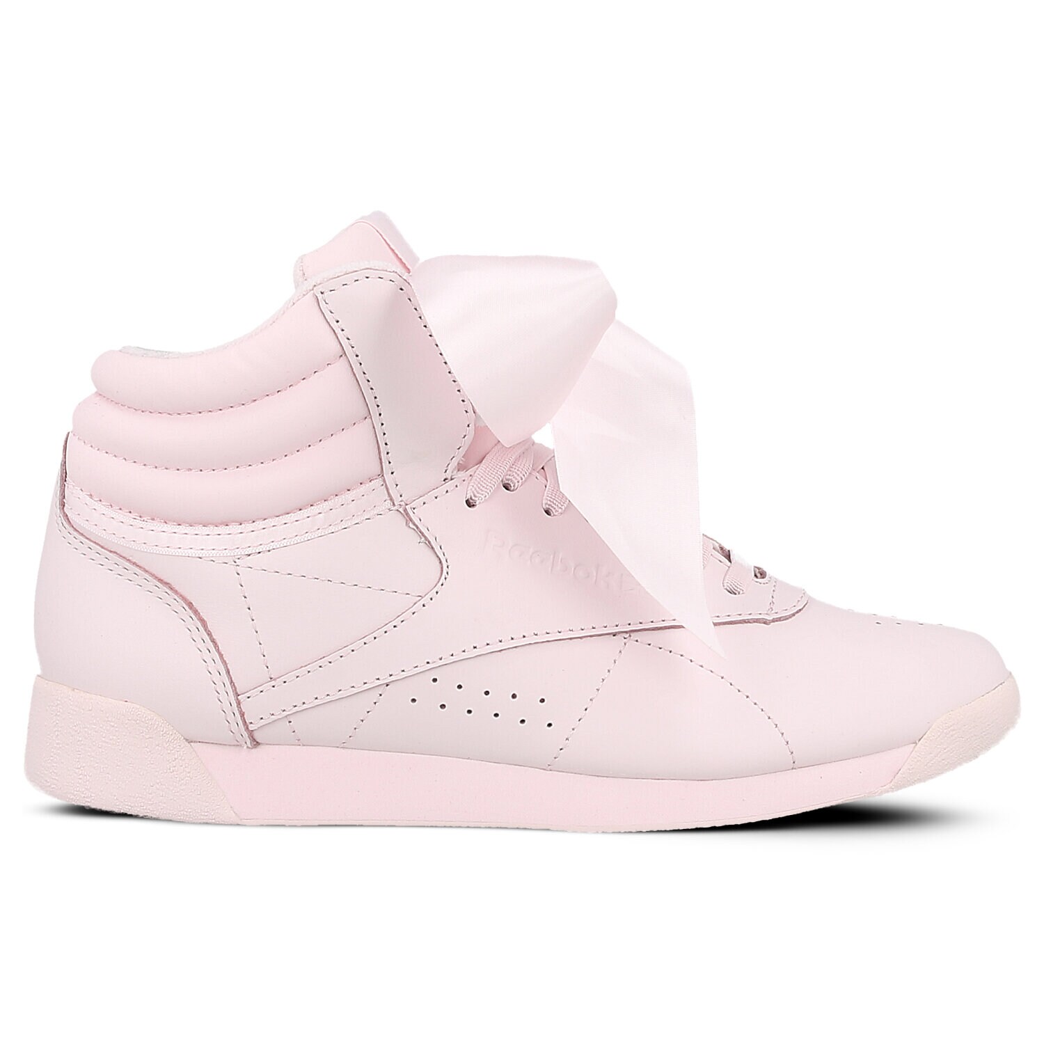 Gebe deinem urbanen Style mit dem Freestyle Hi von Reebok noch einen Ticken an Schick hinzu! Die etwas höhere Konstruktion des Lederschafts gibt dem Fuß einen hervorragenden Halt und stabilisiert deine Schritte. Das anpassungsreiche Schnürsystem mit Satinschleife verleiht deinem Look einen interessanten Akzent. Die abriebbeständige Gummisohle bewährt sich hervorragend auf Beton. Eine zusätzliche EVA-Schicht dämpft die Schritte und die weiche Einlage erhöht den Komfort. Diese zarte Farbversion ist ein Must-have in jeder Damengarderobe !